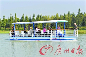 綠道的游玩方式也不僅僅局限于騎自行車或者步行。昨日在南沙蕉門河綠道,讀者代表還體驗(yàn)了水上綠道的魅力。從南沙港快速或者乘坐地鐵四號(hào)線抵達(dá)蕉門站,就可以來(lái)到蕉門河綠道驛站。市民既可以在此騎單車,又可以乘船游覽兩岸風(fēng)光,因?yàn)榫G道已經(jīng)將水路綠島實(shí)現(xiàn)無(wú)縫連接。