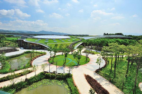 2010臺北國際花卉博覽會中,共有14座展館,其中位于新生公園區(qū)的未來館,與夢想館及生活館為一體設(shè)計(jì)的永久建物,運(yùn)用替代能源、智能溫控等系統(tǒng),除了替地球降溫,也讓繁忙的民眾享受回歸大自然的氣息。