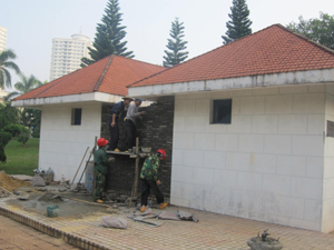 前日下午,記者在?跒I海公園里看到,公園中央有一個外觀很漂亮的公廁,4名工人正在用磚砌墻將公廁的過道封死。記者走近發現,該公廁的玻璃窗破損嚴重,一陣風吹來,從公廁里傳出陣陣臭味。一些在公園散步的人看到公廁被封,紛紛上前向工人詢問情況。“公園內唯一的公廁被封了,以后我們怎么上廁所呀?”一位年輕女士疑惑地說!鞍,這個公廁太臟了,確實該整治了,不過也不應封了呀?”一位大媽說。工人稱他們只是打工的,不知道具體情況。
