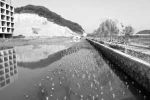 浙江省海洋水產養殖研究所所長謝起浪說,人們早就知道紅樹林能凈化水質,一直謀劃用紅樹林造一個生態凈化系統,不用漂白粉,不用消毒劑,不用沉淀劑,污水流進紅樹林,清水流出去。