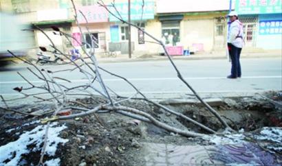 記者看到,所有的樹根都裸露在外,有的樹芽也已經干掉,坑邊還有折斷的樹枝。盛大爺告訴記者,最開始樹苗根部是有土坨保護的,但是放在外面時間長了,土坨都散開了。“現在不知道這些樹是死是活,如果現在再不及時栽下去,我怕這些樹苗就不能活了,白扔了。”白松路上一家修鞋店的工作人員說。“附近有的小孩兒很淘氣,掰樹枝。這小樹苗也是生命,不能讓它就這么死了啊。”附近的居民說。