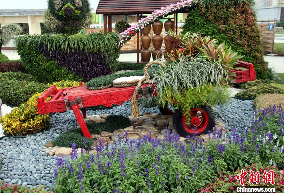在臺北花博花圃競賽區內,連日來,島內各縣市政府紛紛在此“斗艷”,以庭園造景藝術手段凸顯各地特色及形象。圖為臺北市的形象作品,借助市域內最后一塊農作物產地意象,出人意料地以“田園風光”作為主題。 中新社記者 王健 攝