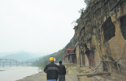 石窟懸于崖壁上,只要刮風下雨,就會流下雨水破壞石窟。為了保護石窟,將采用玻璃罩保護。