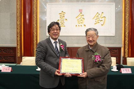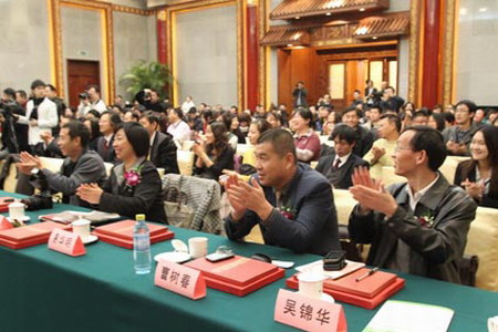 上海世博園總規劃師吳志強教授(左)榮獲2010世界生態建設杰出人物金獎,由著名古建專家、世界屋頂綠化協會名譽主席羅哲文教授(右)為其頒獎。