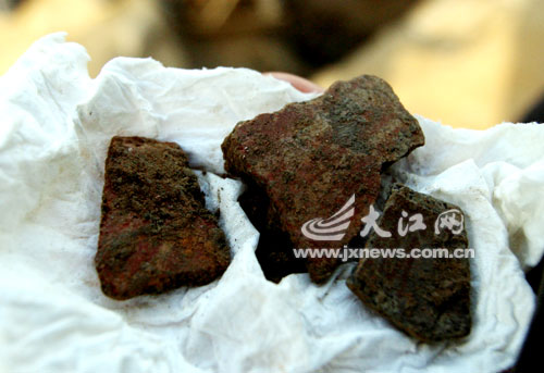 “這幾片陶片很漂亮,在江西非常少見。”一名考古人員的手上,用紙巾小心翼翼地包著3片陶片。雖然還沾著泥土,卻遮擋不住陶片上紅色彩繪的魅力。彩陶并不少見,但是這3片彩陶卻“誕生”于6000多年前的新石器時代。據徐長青介紹,彩陶實際上是一種外來文化的產物。在當時,江西并不流行使用這種陶器。所以,發現的數量非常少,至今都沒有發掘過完整器物。新石器時代的彩陶殘片,在省內都是寥寥無幾。目前,考古人員也不好確定老虎墩遺址的新石器時代彩陶殘片來源于何處,但是可以確定并非當地所產。至今為止,只有在贛南一帶,才發現過商周時期的彩陶窯址。