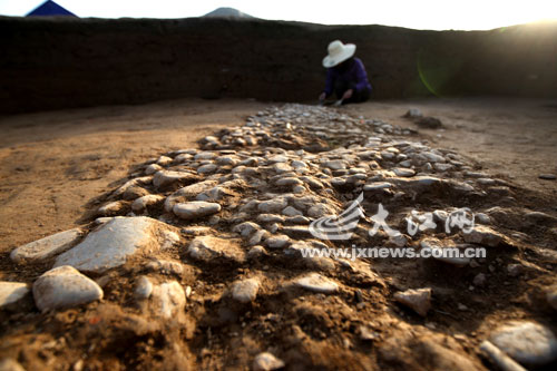 老虎墩遺址發掘一條史前時期的鵝卵石路 堪稱“江西第一路”