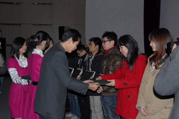 南京林業大學副書記、副校長萬福緒為園冶杯獲獎學生代表頒發一等獎