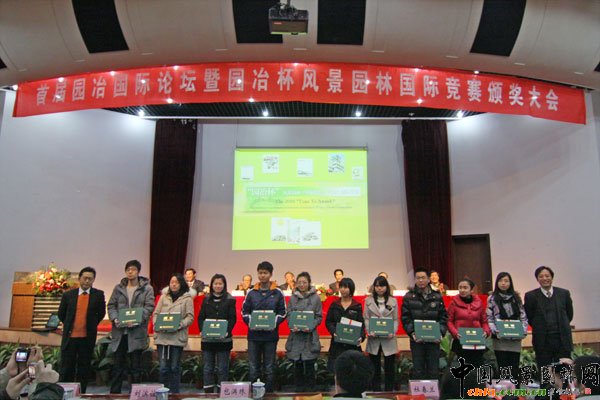 中國風(fēng)景園林網(wǎng) 首屆園冶論壇暨園冶杯風(fēng)景園林(畢業(yè)設(shè)計作品、論文)國際競賽頒獎大會于12月26日在南京林業(yè)大學(xué)隆重召開。近30所風(fēng)景園林相關(guān)專業(yè)院校的近500名師生和業(yè)內(nèi)專家、學(xué)者參加了此次盛會。南京林業(yè)大學(xué)副書記、副校長萬福緒致歡迎辭,住房和城鄉(xiāng)建設(shè)部總經(jīng)濟師李秉仁、江蘇省建設(shè)廳副廳長王翔等領(lǐng)導(dǎo)出席并講話。大會為獲獎學(xué)生、教師代表和院校頒發(fā)了證書和獎品。