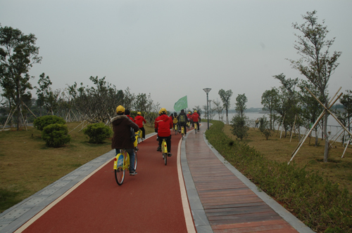 青年記者綠道行活動第一站海珠區綠道。 (記者 歐甸丘攝)