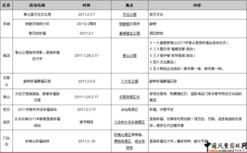 附圖1:2011年春節北京公園“祈福迎新匯”活動匯總