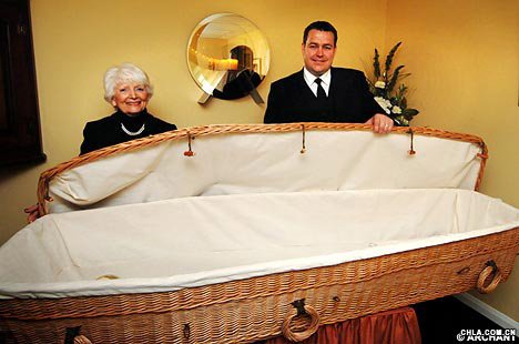 英國諾威奇附近威蒙漢姆小鎮上的羅斯戴爾殯儀館推出的綠色環保棺材非常受追捧。經理安妮·貝克特-艾倫稱,棺材原料采用竹子、柳條和菠蘿葉,既環保又有新意,深受顧客喜愛。
