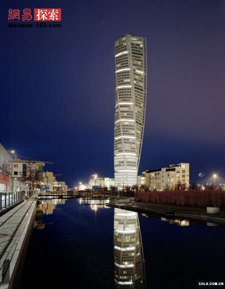 瑞典的“螺旋中心”大廈是斯堪的納維亞半島的最高建筑物,高189米,共有9個區層,每區層有5層,有152個單元,每區層都旋轉少許,使整棟大廈共旋轉90度。該大廈最底下兩個區層是辦公室,其余7個區層共有150個豪華住宅單元,總面積1.5萬平方米。卡這座極具特色的建筑已成為瑞典南部城市馬爾默的標志。