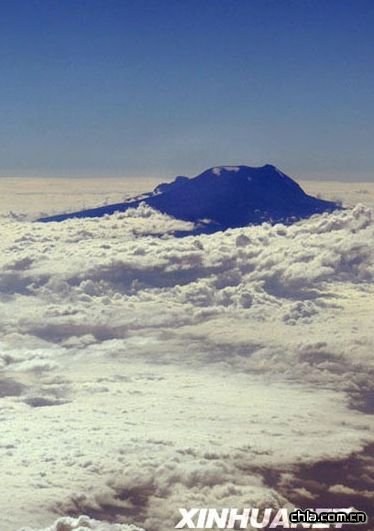 這是11月11日航拍的非洲第一高峰乞力馬扎羅山峰頂,由冰川和積雪組成的白色雪冠已經所剩無幾。新華社記者徐速繪攝