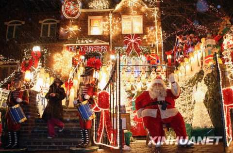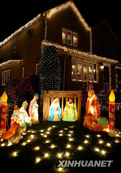 這是12月6日在美國紐約“戴克高地”社區拍攝的圣誕燈飾。新華社記者侯俊攝