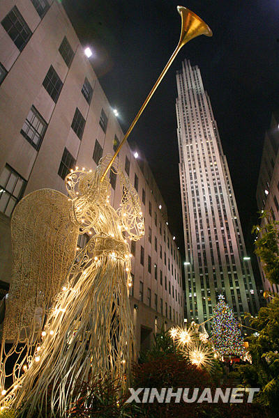 這是12月7日在美國紐約洛克菲勒中心拍攝的圣誕布景——吹號的天使。隨著圣誕節的臨近,紐約各處的景點、商場和社區紛紛裝扮成一年中最靚麗的模樣,吸引廣大市民和游客前來參觀。新華社記者侯俊攝