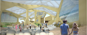 迎接觀眾的第一道自然景觀是海岸,將著重體現對能源的合理應用。這里將向觀眾顯示怎樣通過利用太陽能、風能和波浪能等可再生能源,來提高人們的生活品質,改善城市地區的氣候。