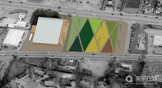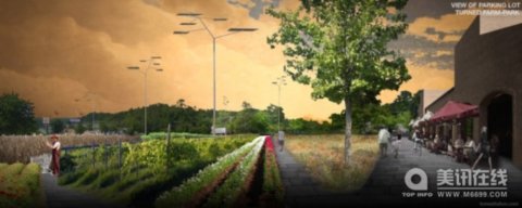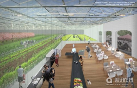 這個方案是將大盒子商店停車場改為農場,商店內部變為溫室和飯店,現有的建筑設施改造成能源產生器。評委、有機農業的研究者Eric Corey說:“轉變農業和商業的經濟流向是非常有必要的。我非常喜歡這個作品,它合理使用了現有的基礎設施,當地的農業以及栽培方法。”