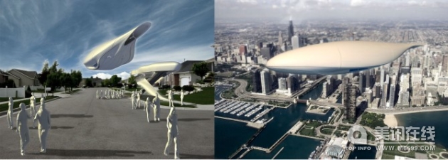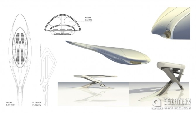 設計的靈感來源于齊柏林式飛船(Zeppelin),飛船將用氦做燃料,因此是一種可持續的交通工具。