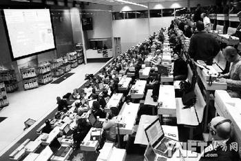 在荷蘭花卉拍賣中心,記者看到上百位交易員坐在一個大廳內,每人面前有一到兩臺電腦。大廳類似于大學的階梯教室,在大廳的前面,是兩個形狀像“鐘”一樣的巨大電子信息牌,上面是當日各種鮮花和植物的交易信息。在“鐘”的下面,一排推車在交易員前緩緩自動駛過,推車上是已包裝好了的各種鮮花和植物,好讓交易人員大致看一下品質。