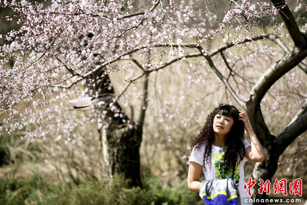 4月4日,北京植物園內春桃怒放,眾多游客穿行與花間柳下感受北京遲來的春天。北京植物園2010年第22屆北京桃花節暨第7屆世界名花展于2010年4月1日至5月5日在植物園隆重舉辦。中新社發 陸欣 攝