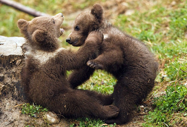 4月4日,瑞士伯爾尼的一個熊公園,一對4個月大的雙胞胎棕熊在戲耍。