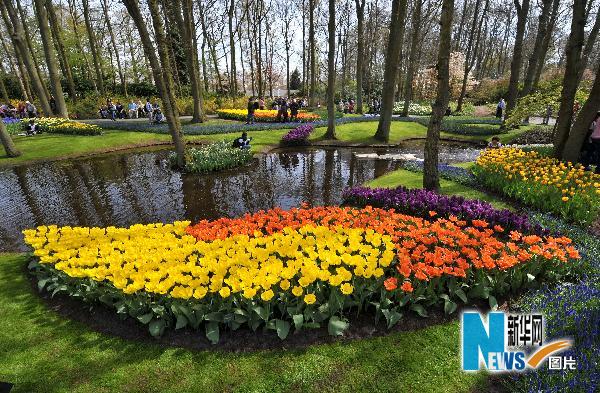 4月24日,游客在荷蘭中部城市利瑟附近的庫(kù)肯霍夫花園欣賞郁金香、風(fēng)信子等花卉。庫(kù)肯霍夫花園是世界上最大的郁金香花園,種植有100多個(gè)品種的450萬(wàn)株郁金香。隨著天氣逐漸變暖,郁金香和園內(nèi)其他花卉競(jìng)相開(kāi)放,吸引了數(shù)以萬(wàn)計(jì)的游客前來(lái)賞花踏春。新華社記者武巍攝
