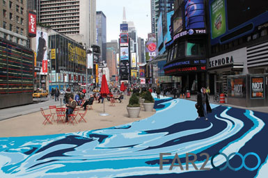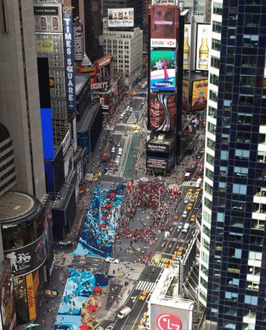 該方案計劃在7月中旬布置,陳列18個月。之后,景觀設計專家和建筑師、工程師等將為時代廣場設計新的道路陳設和地下基礎設施等,并改變時代廣場周圍的道路。永久性廣場改造計劃將在2012年開始進行。