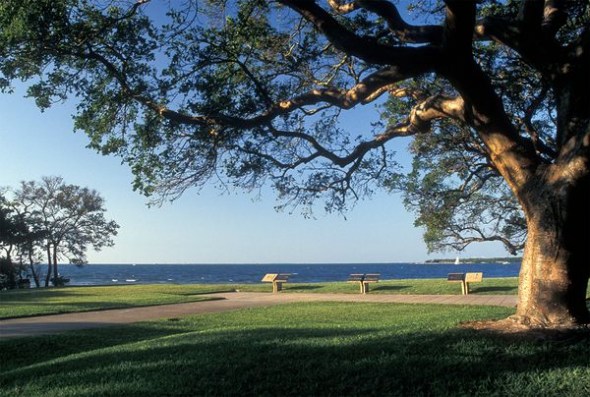 佛羅里達州的迪索托國家紀念公園(De Soto National Memorial),從這個觀景點向遠望去,墨西哥灣碧綠的海水一望無際。這座公園以16世紀初期從陸路發現佛羅里達州部分土地的西班牙探險家赫南多-迪-索托(Hernando de Soto)命名。迪索托國家紀念公園是垂釣和玩皮劃艇的好去處,目前仍對游人開放,看上去并未受到墨西哥灣漏油的影響。這座公園80%左右的園區屬于紅樹林沼澤,剩余園區則由樹平原和闊林構成。作為墨西哥灣部分魚類的棲息地,紅樹林對該地區生態系統及捕魚業的未來至關重要。