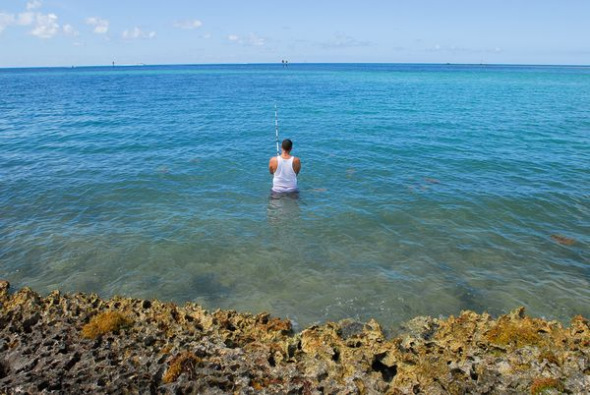 佛羅里達州的比斯坎國家公園,一名男子在墨西哥灣海岸的淺水中垂釣。迄今,比斯坎國家公園海岸附近尚未發現浮油,不過美國國家公園管理局的工作人員已為浮油的來襲做好準備。同許多受監控的區域一樣,工作人員已經從比斯坎國家公園搜集了土壤和水的樣本,作為未來比較的基本數據。埃姆澤爾莫說:“我們從一開始就參與了國家公園的管理和監控。國家公園以前就在這里,在墨西哥灣漏油事故后仍會在這里。我們會繼續在墨西哥灣保持存在,而這種存在已有一百多年的歷史。”