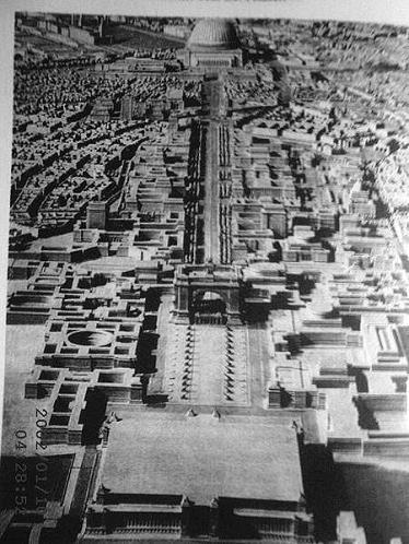 第二次世界大戰以德國戰敗結束,最終納粹建筑師艾伯特?史皮爾的宏偉建筑計劃也未實現,史皮爾是希特勒的御用建筑師,他提出了重建柏林的構思,計劃建造世界之都“日耳曼尼亞”。和前蘇聯宮殿一樣宏偉華麗,日耳曼尼亞有3英里長的林蔭大道,一排巨大的建筑物。充分展現了希特勒的獨裁專制思想。