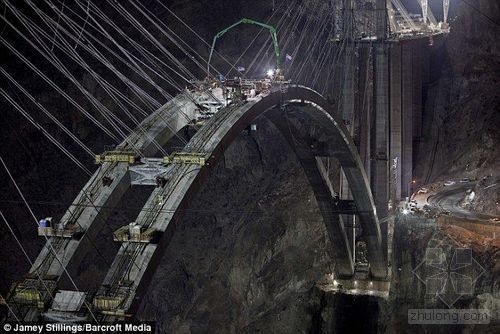 胡佛大壩前尚未完工的大橋已經(jīng)展現(xiàn)出宏偉壯觀的身姿。大橋距離科羅拉多河水面271米,竣工后總長度將達(dá)579米,跨度為世界之最329米,造價(jià)約合16.7億人民幣。