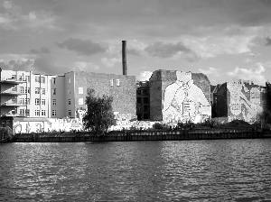 施普雷河畔廢棄廠房外立面上抗議媒體施普雷計劃的涂鴉