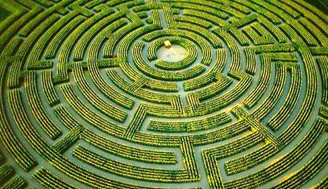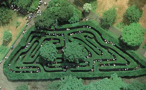 世界上最大的植物迷宮創(chuàng)建于安德爾河畔的海納安德爾,里面種的是向日葵,每年冬天,農(nóng)夫們會重新設(shè)計并播種,到了春天就又長出一個全新的迷宮圖案。1996年開園時,有超過85,000多人試圖走出這片10英畝的迷宮。