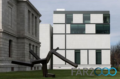 新附樓有4層,能夠陳列5000件作品,此外還用玻璃將一座已有的庭院封閉起來,形成游客中心、一座咖啡館以及通向特殊展的路徑等。