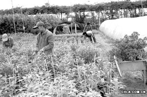 花卉基地里打工的村民們成了每天按時(shí)上下班的打工族