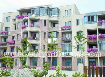 鑒于大連城區地面綠化空間越來越少,今年該市將立體綠化作為重點建設內容,圍繞樓體、樓頂、橋體、墻體實施大規模立體綠化,力爭將美麗的景觀延伸到“空中”。圖為位于大連旅順中路旁某居住小區,各家陽臺上都懸掛著種有垂吊矮牽牛的花槽,粉色的花朵將整棟居民樓裝飾一新,格外美麗。