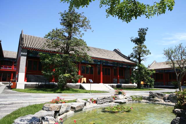 這里是村長院內的貴賓接待室。這個占地面積約3000多平方米的村長院原來是一處市級文物,叫龍王堂,已經有500多年歷史了。這棟建筑門口的兩株老楸樹十分滄桑。當初確定此為奧運村村長院時要進行修繕,但由于兩株老楸樹相距只有兩米多,影響將來接待貴賓,曾一度有意向要伐掉。當時我們堅決要求保護,朝陽綠化局為這“二老”披掛紅綢,像挽扶老人一樣精心請“二老”向兩側平移了兩米。這兩位“老人”在這里獲得了新生,并見證了整個奧運會的過程,他們驕傲地向各國貴賓炫耀了這座建筑的悠久歷史。北京的仿古建筑太多了,如果沒有這兩株古樹,誰能知道龍王堂的真正年頭呢!