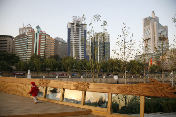 圖為北京市朝陽區(qū)通惠河南岸景觀公園——慶豐公園。