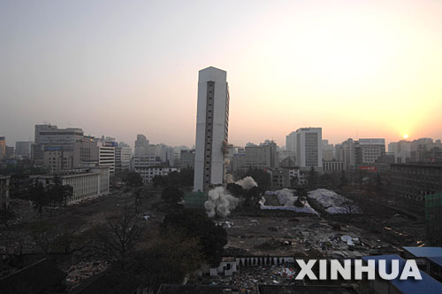 2月6日,位于江西省南昌市青山湖畔的四星級(jí)酒店——五湖大酒店在“浪費(fèi)資源”的質(zhì)疑聲中被成功爆破拆除(胡國林?jǐn)z)。