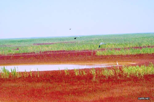 夏秋季節,進入黃河三角洲自然保護區,映入眼簾的是一幅蔥綠、珍禽嬉戲、游人如織的美麗畫卷,在放眼望不到邊的綠色盡頭,是黃河口濕地的獨特美麗景觀--紅地毯。
