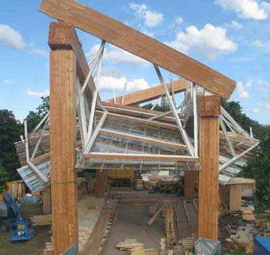 弗蘭克.蓋里在英格蘭設計的第一座建筑備受期待,這就是倫敦海德公園內的Serpentine展臺。 這座站臺用四座巨大的鋼梁組成,外覆面采用了花旗松木。蓋里說從蝴蝶身上受到啟發,設計了一個復雜的玻璃板重疊網絡。不過,蓋里不愿意講述他的設計過程,只是說:“我說的都是外表上的東西。”經過一再追問,蓋里才透露他的設計靈感來自于傳統的英式花園。他說:“我想到了花園舞會、木料給人的溫暖以及花園亭臺上的條帶。” 他認為建筑形式來自于計算機設計出來的建筑中不斷滋生的樣式。他說:“現在大部分建筑都是在計算機里設計的,我從中看到了一些形狀,可能這是某種反應,不過不是氣憤的反應。” 在瓢潑大雨中展現的這座建筑可能不是其最佳狀態,也不像蓋里其他作品那樣流暢,但它確實與眾不同。 與其他Serpentine亭臺一樣,這座建筑從受邀設計到完成僅用了6個月。未來3個月里,它將舉辦一系列夜話節目和活動,白天則是一座咖啡館和觀景臺。 蓋里在英國的另一件作品是蘇格蘭的Maggie’s中心。