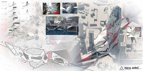 基于各種理論,摩天樓崇拜是地球人的本能,世界各地的城市表達(dá)自身能量值的主要方式就是蓋高樓。拿我們國家來說,當(dāng)前已有高層建筑10萬幢,其中100米以上的超高層建筑1154幢(出處)。國內(nèi)各地爭建第一高樓,國際高樓排行榜亦常換常新。最近位于紐約的國際建筑論壇 eVolo 舉辦了全球摩天樓設(shè)計大賽,出發(fā)點是探索摩天樓的發(fā)展趨勢。既然是純實驗性的比賽,對場地、建筑高度、外形和技術(shù)指標(biāo)沒有任何規(guī)定,參賽建筑師有無限的想象空間,所以結(jié)果可想而知。 在大師柯布西耶曾經(jīng)構(gòu)想的“光明城市”模型里,大城市的基本要素是高層建筑、快速交通和大片綠地;而本次 eVolo 09 大賽則深入探索了在有限的城市空間里垂直發(fā)展的各種可能,從這個角度看它的意義非常重大。看到以下的獲獎作品你或許難以接受覺得匪夷所思,但沒準(zhǔn)未來的城市真有可能是這樣的。 第一名:美國 Kyu Ho Chun/Kenta Fukunishi/Jae Young Lee ![]() ![]() ![]()