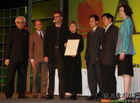 ![]() 中國風風景園林網訊 深圳市光明新區中央公園概念規劃方案"云水石"正式獲頒美國建筑師協會(AIA)頒發的區域與城市設計類別最高獎--全美榮譽獎。由深圳市規劃局光明分局、深圳市光明新區管理委員會有關領導及深圳市北林苑景觀及建筑規劃設計院院長何昉教授、副院長葉楓高級景園師等組成的赴美領獎團隊,親至舊金山頒獎現場Moscone中心,與該項目的主創設計師一起上臺領獎,共同見證中央公園歷史一刻。AIA大會表示:該設計展示了一個"設計師如何通過建筑上的創造,把自然和環境緊密結合的精彩案例"。美國建筑師協會于2009年初從全世界700個提交作品中選出了25個作品,授予建筑、室內設計及城市設計等專業最高榮譽及其認可的AIA2009年度全美榮譽獎。 獲獎方案"云水石"在光明新區中央公園概念規劃方案國際咨詢活動中誕生。此次國際咨詢活動由北林苑擔當技術支持單位,活動從2007年11月開始啟動,由深圳市光明新區管理委員會和深圳市規劃局共同主辦,深圳市規劃局城市與建筑設計處、光明分局承辦,采取邀請以及公開報名相結合的方式進行,在全球范圍內公開邀請中外優秀設計公司、事務所或聯合體參加。 2008年4月22日,在該咨詢活動第二階段評審會上,CAO︱Perrot Studio和Lee + Mundwiler Architects聯合體的概念規劃方案"云水石"最終被確認為優勝方案。