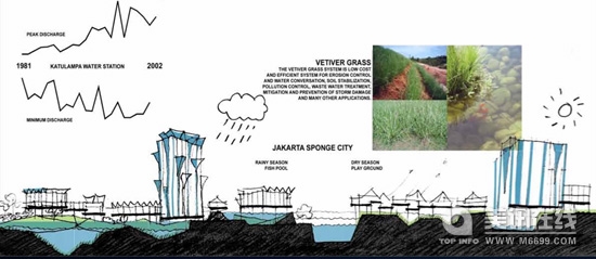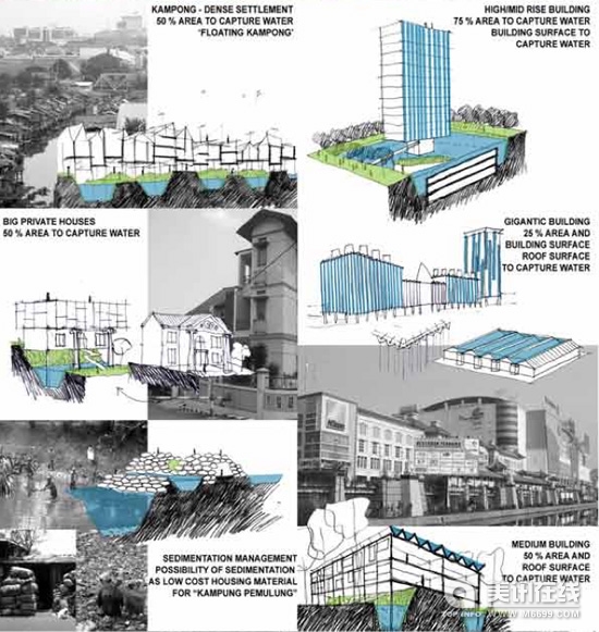 二等獎獲獎作品是“收集水資源(雅加達,海綿之城)”。這個設計能解決雨水問題,它會在雅加達內(nèi)設置9個集水區(qū),用來收集雨水,這樣不僅可以解決自然水災問題,同時還有助于社區(qū)建設。