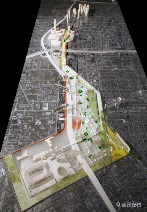 Green Tech City 該項(xiàng)計(jì)劃沿著從市中心商業(yè)區(qū)到圣莫尼卡的西城擴(kuò)展通道建設(shè)綠化科技區(qū)。 計(jì)劃將自身和生命的有機(jī)體比較,包括車站之間新綠化帶組成的骨骼系統(tǒng);沿著交通系統(tǒng)的2.5英里長(zhǎng)的公園構(gòu)成的呼吸系統(tǒng);像高速公路大橋,市區(qū)公園和農(nóng)業(yè)區(qū)等等連接到社區(qū)的區(qū)域則是肌腱。 ![]() ![]() ![]()