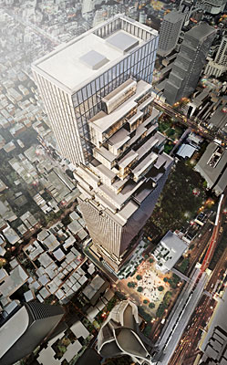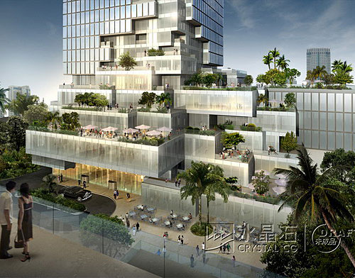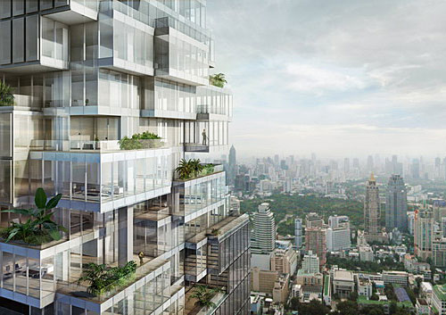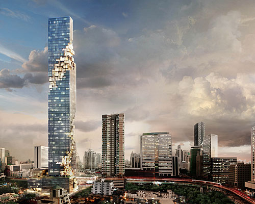 大都會建筑事務所(OMA)最近公布了它為泰國首都曼谷設計的“曼谷樓”(MahaNakhon Tower)和廣場。這個項目由大都會建筑事務所北京辦事處的合伙人奧雷·舍人(Ole Scheeren)領導設計。這個建筑面積為160萬平方英尺,投資5.15億美元的項目,包括200套公寓房間;一個有150套房間的旅館;還有混合用途的公共空間和商務空間。“曼谷樓”計劃于今年后期開始建設,預計于2012年后期完成。 “曼谷樓”的主體建筑是一幢精心設計的77層高樓,預計的高度為1,017英尺。它將是曼谷最高的建筑物。一種螺紋形切口的“建筑像素”纏繞這幢建筑物,打斷了幕墻,為大的房間和共享空間露出一系列的臺階。據奧雷·舍人說,這種“錯亂的表現形式”,露出了曼谷自己的“靈魂”。他將曼谷描述東南亞最繁忙和混亂的城市。通過這種“建筑像素”,這幢建筑物的傳統的玻璃幕墻被分割成有各種植物環繞的許多立方體。反映了奧雷·舍人所謂的在這座熱帶城市的“文化和自然之間的堅持不懈的努力”。 另一個重要的特點是,完全可動的“兩褶陽臺窗”,允許這幢建筑物的較小單位的玻璃幕墻完全打開。奧雷·舍人說,在曼谷的熱帶氣候中,這種設計手法,增加了外部空間和內部空間的流動性。他說,不是用分離的露天陽臺,因為它將造成較小的單位和更多的費用,他的設想是,這種方法使用戶能夠很快地將整個起居室向陽臺敞開。 在地面,這個項目的設計試圖通過在兩個臺階系列之間創造一個“山谷”,改造大樓的臺階。這兩個臺階,一個是在大樓的底部;另一個是一個鄰近的建筑——所謂“立方體”——與餐館、咖啡店和其他們商業空間一起構成一個公共廣場,與街道和城市環境建立一種聯系。奧雷·舍人說,這種意義聯系到大樓本身的名字。他說,在泰國,曼谷的全名是Krung Thep Maha Nakhon,它的意思是“曼谷大都會”。用“曼谷樓”來命名這幢建筑物,表現了這個項目將成為這座城市的中心的雄心。