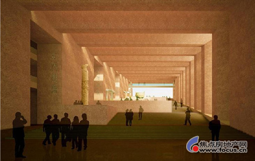 天津博物館歷史大廳效果圖 天津博物館現有建筑面積3.2萬平方米,館藏文物20萬件、館藏圖書20萬冊。由于博物館面積不足,目前天津博物館只能對外展出十分之一的藏品。由于沒有地庫的功能,大量藏品只能在館外另辟地方收藏,不利文物保護。為提升我市博物展覽、文物保護工作水平,滿足廣大市民文化生活的需要,將規劃建設新的天津博物館,F有自然博物館建筑面積1.2萬平方米,已不能滿足現代功能的需求,將現有博物館改建為自然博物館。 新建的天津博物館占地面積約3.2萬平方米,建筑面積5.5萬平方米,主要功能包括基本陳列、引進展覽、學術交流、文物庫房及辦公等,年接待能力150萬人次。館內將建設1個序廳和16個獨立展廳,同時,1.4萬平方米的文物庫房能充分滿足館藏需要。 新的天津博物館不僅僅是文物的收藏與展示場所,更是傳播文化、交流共享的城市殿堂。建筑設計以“世紀之窗”為空間主題,嘗試再現天津悠久歷史和重要地位!笆兰o之窗”是“回顧天津設衛建城600年的文明之窗”、“再現中華百年看天津的歷史之窗”和“展望天津美好前景的未來之窗”。該方案設計創意新穎,整體效果獨特,設計手法簡潔、大氣。建筑內部空間富有特色,特別是歷史大廳以逐級上升、層疊錯落的中庭空間,形成強烈的縱深感,仿佛時光隧道,依次連接古代、近代、現代展廳,帶領公眾游歷天津的文明和歷史發展。 5、天津大劇院