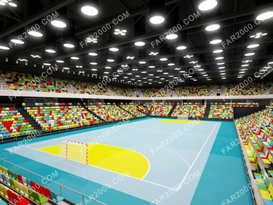 手球館有6000個座位,賽后將成為多種體育項目設施。它的外部是3000多平方米的銅覆層以及700平方米的玻璃。