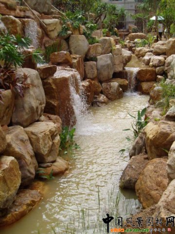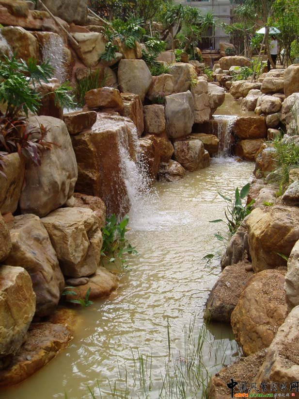 人工湖駁岸及溪流瀑布實景(組圖)