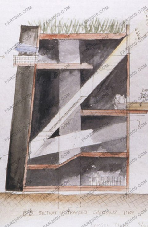 ![]() ![]() ![]() ![]() 據(jù)8月5日報道,昨天500名參觀者參加了挪威Hamaroy的Knut博物館開幕儀式。這座博物館是為挪威作家Knut Hamsun修建的。由Steven Holl事務所設計的博物館靠近這位作家的出身地。開幕儀式正值其誕辰150周年,不過他由于同情納粹,后期臭名昭著。 Holl的設計受到了Hamsun對人類思想復雜性的探索,以建筑語言表現(xiàn)出Hamsun的性格。根據(jù)Hamsun的小說,博物館設置了“空琴盒”平臺,觀景陽臺就像“挽著袖子的女孩擦拭黃色窗玻璃”的場景。 與Hamsun的生平一樣,這座博物館自從1994公布設計以來遭到了很大的爭議。當?shù)赜?00篇文章發(fā)表,迫使這個設計一改再改,增加了一個社區(qū)會堂。這個2700平方英尺的建筑還有展覽區(qū)、一座圖書館、閱覽室和一座咖啡館。 Steven Holl事務所表示,博物館的概念是“像身體一樣構(gòu)筑:看不見的勢力相互糾結(jié)”,從里到外都是如此。木質(zhì)外墻用間隔的隱藏孔洞來突出,建筑的脊柱也用穿孔銅料建造,構(gòu)成中間的升降梯。光線的對角線照亮了白色內(nèi)部空間,一年的某些日子會穿越屋內(nèi)的某些部分。